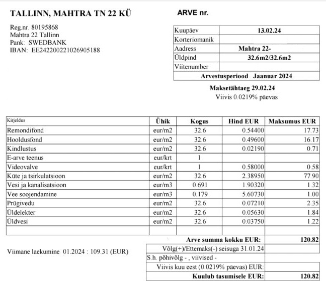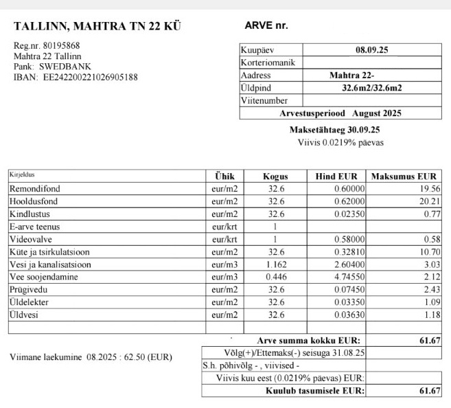 Kuu üür 450 €, millele lisanduvad igakuised kommunaalmaksed. Lepingu sõlmimisel tuleb tasuda 1 kuu ettemaks, tagatisraha ning ühekordne vahendustasu 250€.