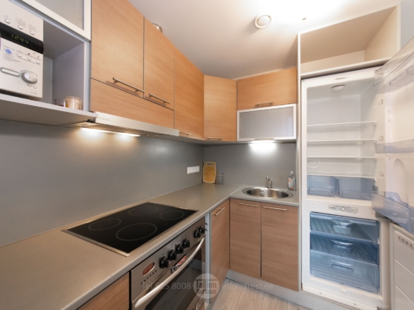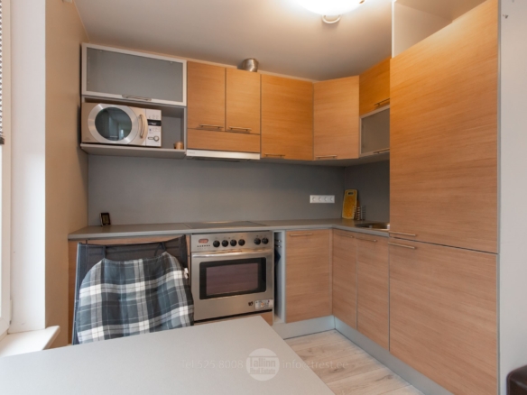 Köök: köögimööbel kogu eluks vajaliku tehnikaga (külmkapp, pliit, ahi, kubu ja mikrolaineahi), söögilaud ja toolid
