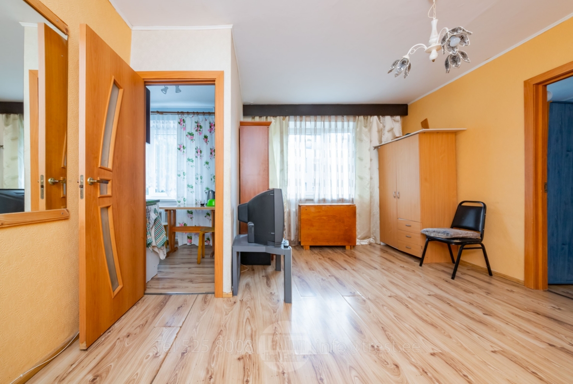 Korter asub maja keskel 3-korruselise maja 2. korrusel. Korteri koosseisu kuuluvad: köök, elutuba, magamistuba, vannituba ja esik. Peaaegu kõik, mis piltidel näha, jääb korterisse.Kõik aknad on sisehoovi poole.