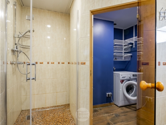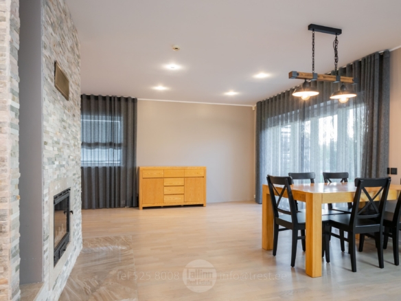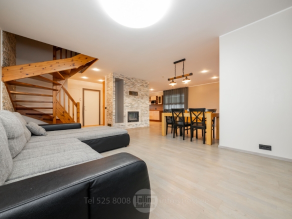 Avar ja valgusküllane elutuba koos avatud köögiga ning pääsuga terrassile loob mugava elukeskkonna. Elutoas on kamin, mis lisab hubasust ja mõnusat atmosfääri. Majas on 3 suurt magamistuba. Maja ees on parkimisvõimalus mitmele autole. Hinna sisse kuulub peaaegu kogu fotodel nähtav sisustus. Kiire vabastamine — võtmed kätte nädala jooksul pärast notaritehingut.