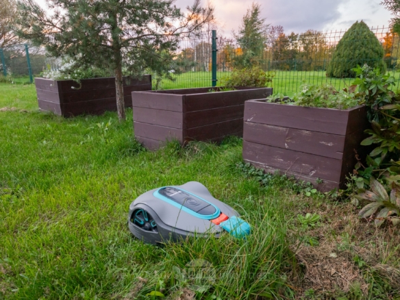 Газон обслуживается робот-газонокосилкой.