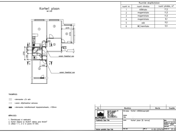 Remondi käigus muutub korter täiesti uueks. Ümberehitus on tehtud ja projekt olemas. Vahetatud korterisisene kaabeldus ja juhtmestik. Seinad on sirgendatud. Vannitoas ja esikus on põrandaküte. Vannituba on suurendatud. Disainmööbel valmib individuaalprojekti järgi ning kogu mööbel ja tehnika on hinna sees.